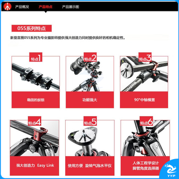 曼富图(Manfrotto)三脚架 MT055CXPRO3 单反相机三脚架 稳定拍摄中轴横置碳纤维3节三脚架 三节碳纤维三脚架+410三维云台套装