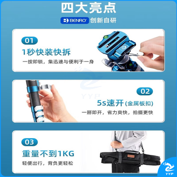 百诺(Benro)青鸟SPRO系列CB259CFFS30扳扣式1秒快装轻量三脚架云台套装 SPro倒置球台碳纤维套装 ZCKJ000027