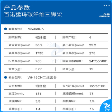 百诺(Benro) MA368CK猛犸观鸟碳纤维三脚架二维液压云台套装 MA368CK