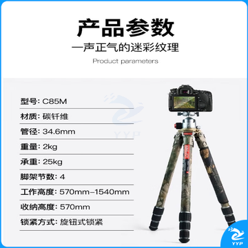 劲捷(KINGJOY)C85M 单反相机专业视频户外摄影迷彩无中轴碳纤维三脚架云台套装 【三脚架】C85M 不含云台 ZCKJ000290