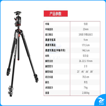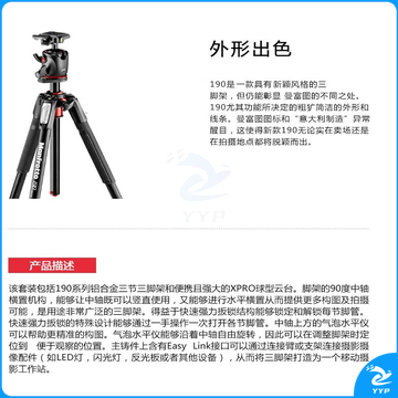 曼富图(Manfrotto) 三脚架 MK190XPRO3-BHQ2 单反相机脚架 铝合金3节三脚架 球形脚架云台套装