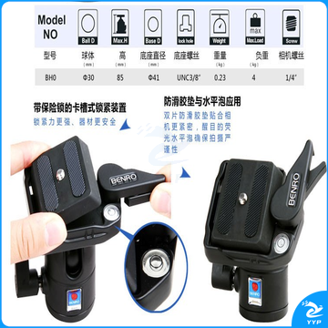 百诺(Benro)BH0 万向球型云台三脚架通用承重4公斤带PH08快装板 ZCKJ000009