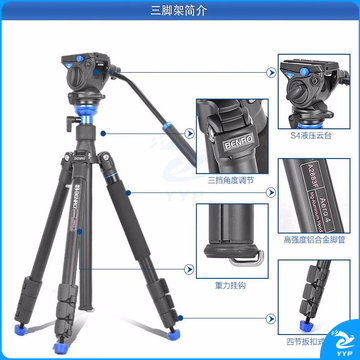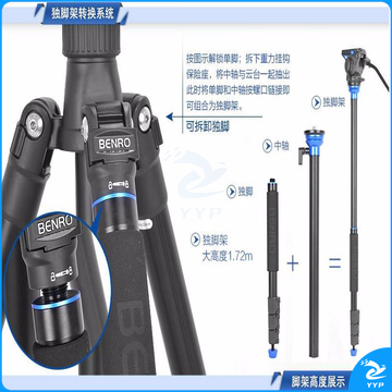 百诺(Benro)A2883FS4N单反相机反折可拆独脚架铝合金三脚架液压阻尼云台套装QR6快装板 ZCKJ000013