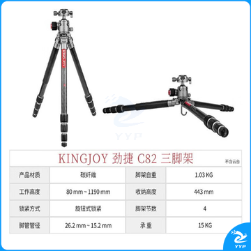 劲捷(KINGJOY)C82 海岳系列单反相机无中轴低拍摄影摄像碳纤维三脚架 【三脚架】C82 不含云台
