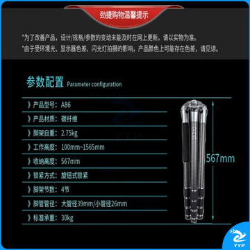 劲捷(KINGJOY)A86 单反相机摄影摄像观鸟大炮长焦无中轴碳纤维三脚架 【碳纤维三脚架】A86 无云台