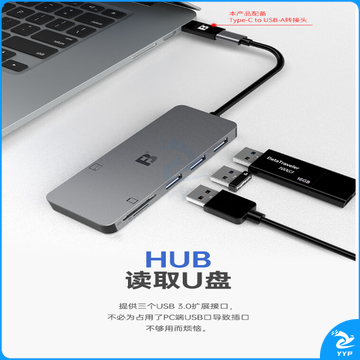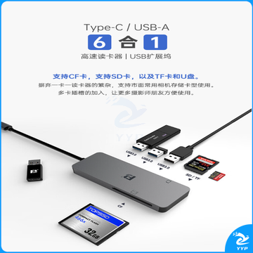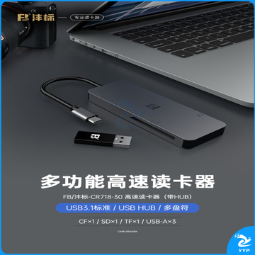 沣标(FB)微单反相机/无人机TF/SD存储卡CF大卡USB3.0扩展坞多合一高速Type-C读卡器 【CF+SD+TF+USB扩展接口*3】六口合一