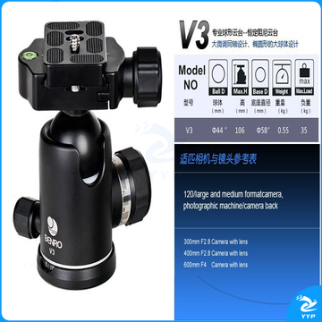 百诺(Benro)V1 铝合金球型云台适合单反相机三脚架独脚架 V1 配PU60板 承重25kg ZCKJ000011