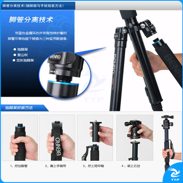 百诺(Benro)A2292TV1 铝合金多功能旅行单反相机三脚架球形云台套装可变独脚架 ZCKJ000003