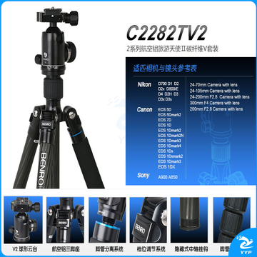 百诺(Benro) C2282TV2 碳纤维三脚架摄影摄像单反相机三脚架球形云台套装承重18kg ZCKJ000056