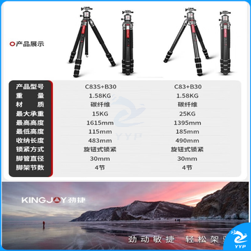 劲捷(KINGJOY)C83 单反相机摄影摄像长焦大炮无中轴顺滑碳纤维三脚架套装 旅行拍照三角支架 液压阻尼云台 【碳纤维三脚架套装】C83+T30X