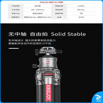 劲捷(KINGJOY)C83 单反相机摄影摄像长焦大炮无中轴顺滑碳纤维三脚架套装 旅行拍照三角支架 液压阻尼云台 【碳纤维三脚架套装】C83+B30