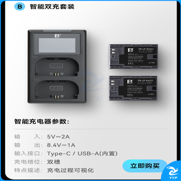 沣标(FB)LP-E6佳能微单反相机电池R6II R5C R5 R6 R7 90D 80D 70D 60D 7D2 6D2 7D 6D 5D4 5D3 5D2充电器 智能双充套装(电池*2+充电器*1)
