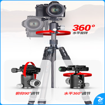 劲捷(KINGJOY)碳纤维三脚架单反相机摄影摄像手机直播稳定支架 专业户外旅游便携独脚微单三角架 G55C 【球形云台】铝合金脚管G55+G0