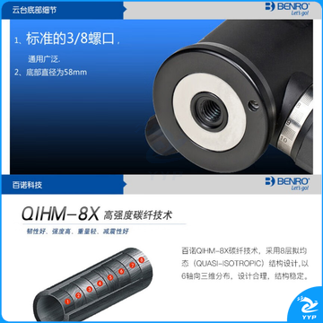 百诺(Benro) C3282TV3 碳纤维单反相机三脚架球形云台套装 配PU60快装板 ZCKJ000043