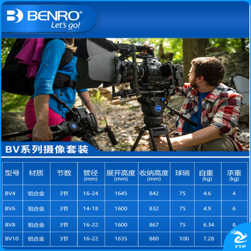 百诺(Benro) BV4摄像机三脚架单反照相机液压阻尼云台摄影三角架套装 3节 承重4kg ZCKJ000020