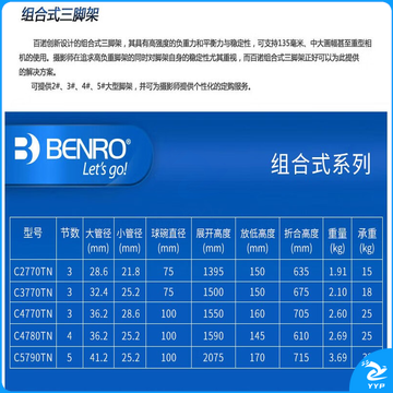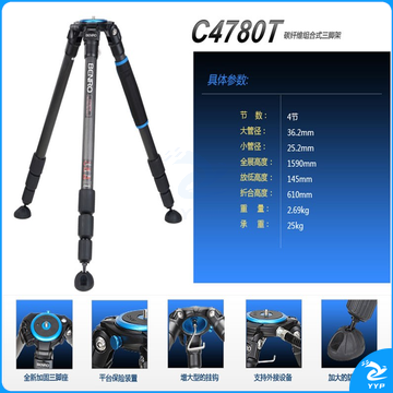 百诺(Benro)C4780TN 组合式碳纤维无中轴单反相机三脚架 C4780TN三脚架(4节 承重25KG) ZCKJ000052