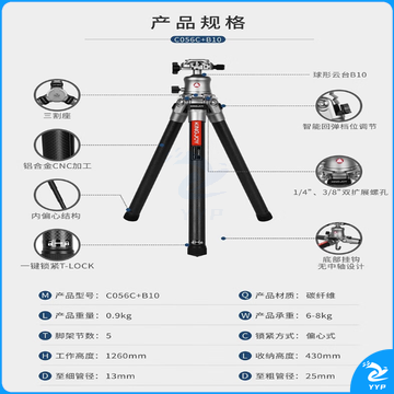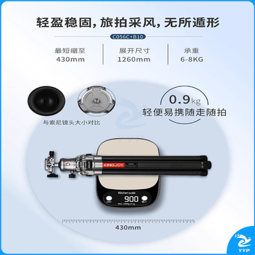 劲捷(KINGJOY)专业碳纤维相机三脚架 便携三脚架 C056C 【C056C+B10】碳纤维脚架云台套装