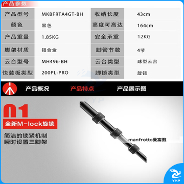 曼富图(Manfrotto) MKBFRTA4GT-BH反折 碳纤维三脚架球形云台套装
