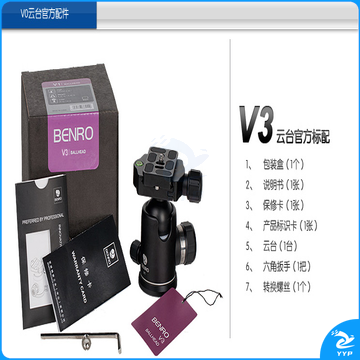 百诺(Benro)V0 铝合金球型云台适合单反相机三脚架独脚架 V0 配PU50板 承重20kg ZCKJ000010