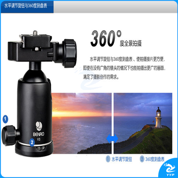 百诺(Benro)V3铝合金球型云台适合单反相机三脚架独脚架 V3 配PU60板 承重35kg ZCKJ000012