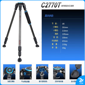 百诺(Benro)C4770TN 组合式碳纤维无中轴单反相机三脚架 C4770TN三脚架(3节 承重25KG) ZCKJ000051