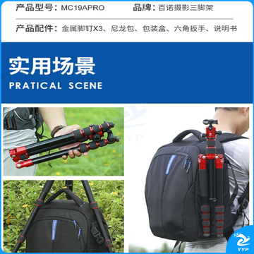 百诺(Benro)MC19A PRO 单反相机摄影球形云台套装支架 MC19A PRO(黑色、蓝色、红色、钛色)三脚架套装 ZCKJ000055