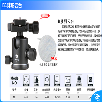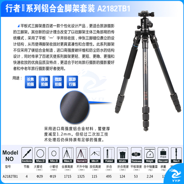 百诺(Benro)A2182TB1 铝合金脚管带快速中轴4节三脚架球形云台套装 ZCKJ000008