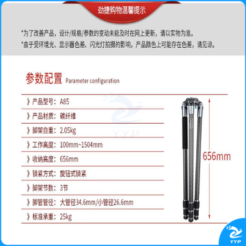 劲捷A85三脚架打鸟大炮长焦角架单反摄影摄像无中轴碳纤维三脚架 A85 无云台