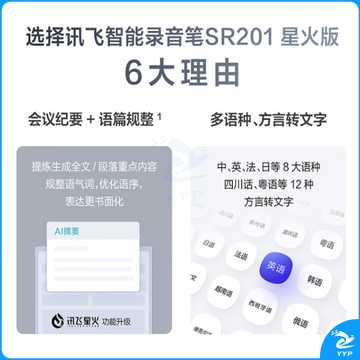 科大讯飞 iFLYTEK SR201星火版 智能录音笔 免费转写 中英文实时互转 触摸屏融合按键操作 专业降噪 32G+云储存 星空灰