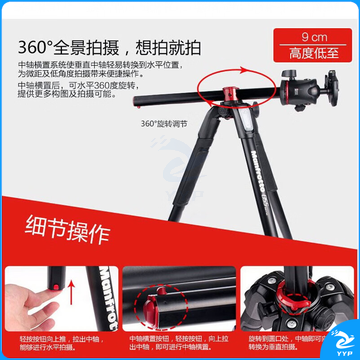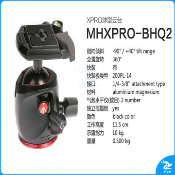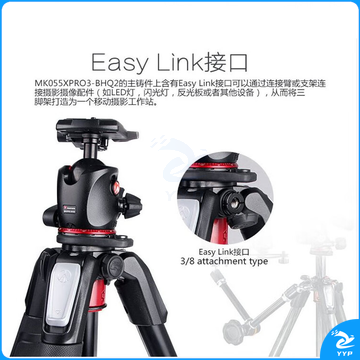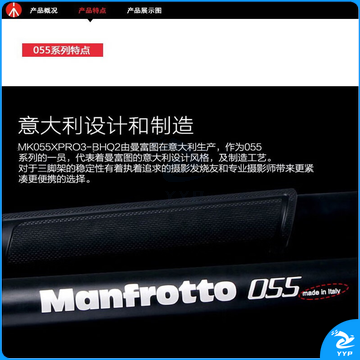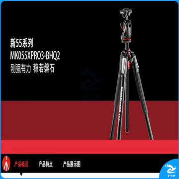 曼富图(Manfrotto) MK055XPRO3-BHQ2 单反相机三脚架 中轴横置脚架 铝合金三脚架球型云台套装