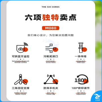 劲捷M080蓝牙自拍杆分离式遥控器手机伸缩旅游神器360度旋转全自动多功能三轴云台三脚架二合一便携 zckj000341