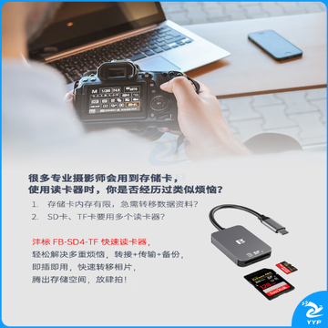 沣标(FB)手机/微单反相机/无人机/记录仪UHS-II二代SD/TF卡二合一高速Type-C读卡器 UHS-II(SD+TF卡槽)二合一读卡器