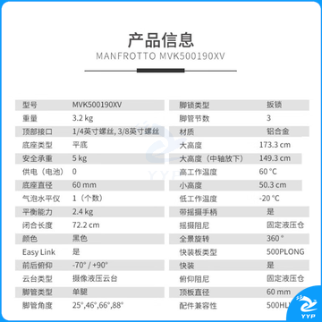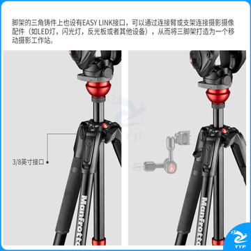 曼富图(Manfrotto) MVK500190XV 单反微单直播三脚架套装 摄影摄像铝合金可调水平三脚架套装+500AH云台套装