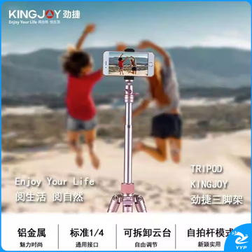 劲捷(KINGJOY)P056S 单反微单手机旅行自拍杆一体式铝合金三脚架球形云台套装