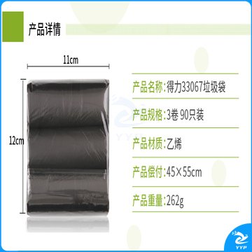 得力(deli) 3卷(90只)点段式办公生活加厚垃圾袋45*55cm 垃圾分类 办公用品 黑色33067