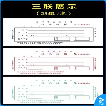 往来收据 天津市企业专用往来收据 无碳复写3联 25组/本